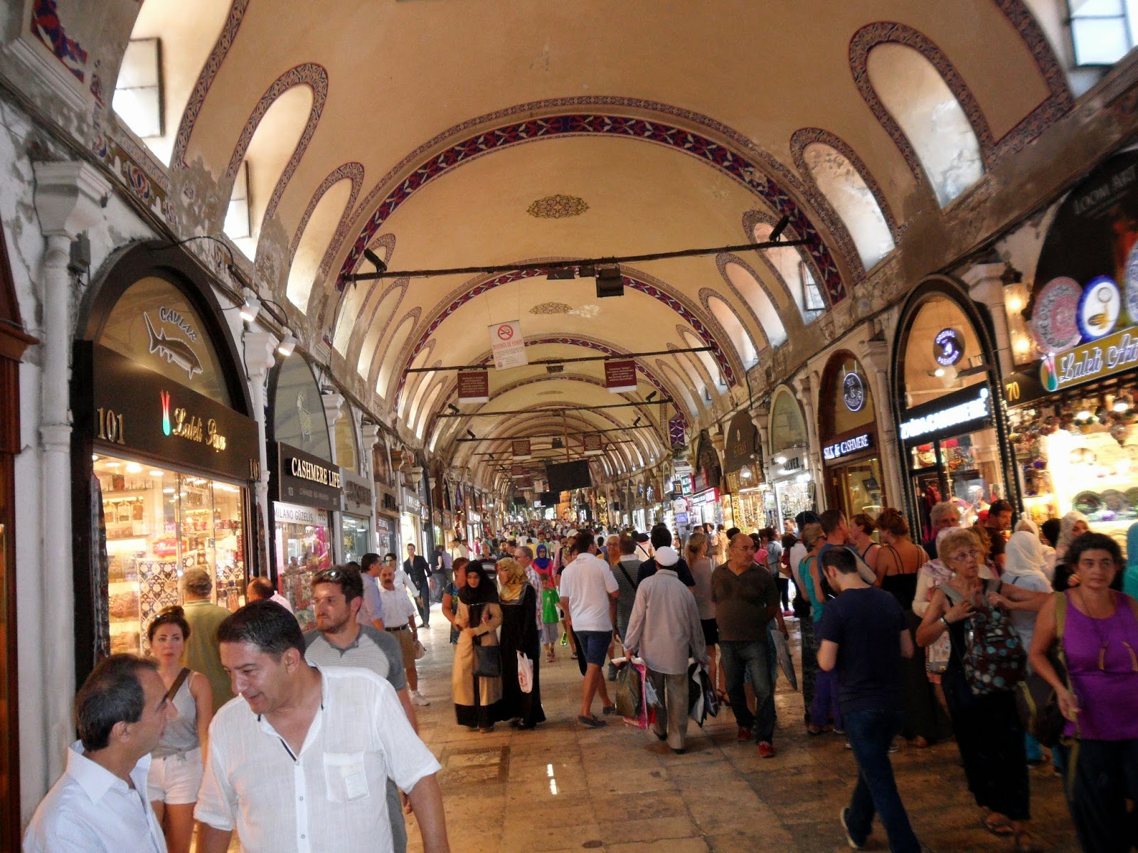 Tak tedy na úvod - Velký bazaar je prostě trh. Trh se vším možným. A konkrétněji se jedná o cca 4 tisíce obchodů v zastřešených uličkách. (Dobré mapky zde.) Z toho vyplývá hned jedna rada na začátek. Pokud uvidíte něco, co se vám líbí, IHNED si to kupte!!! (samozřejmě po smlouvání) Maximálně se můžete zeptat na lepší cenu u stánku vedle (což je takové divné, když si tam všichni kamarádi), ale jinak ten stánek už prostě nenajdete. My jsme s manželem našli pro něj kožený pásek, ale říkali jsme si, že se zkusíme zeptat na cenu ještě jinde. A všude jinde si od začátku říkali 2x tolik!!! (což usmlouvat na 50% není problém, ale když usmlouváte ze 100 na 50, a jinde vám ho chtěli prodat za 40 (takže po usmlouvání třeba 25-30), tak to naštve). Aby bylo jasno - ten původní stánek jsme už nenašli!